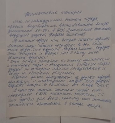 В посте также отмечается, что формат дискотеки «45±5» не востребован жителями.