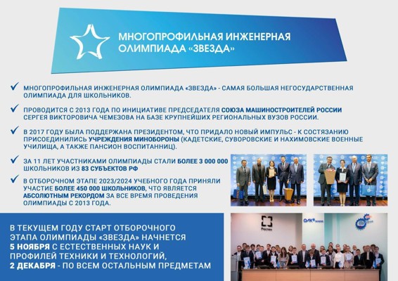 Отборочный этап многопрофильной инженерной олимпиады «Звезда» стартует 5 ноября
