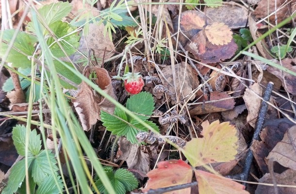Ноябрь удивляет: Земляника созрела в лесу Псковской области