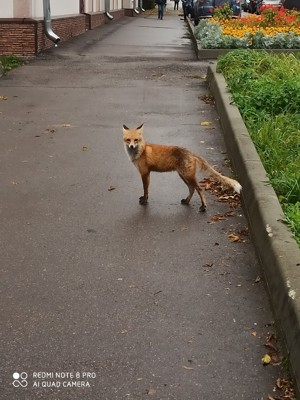 Лисицу также запечатлели около музыкальной школы, а вчера видели на железнодорожном вокзале.