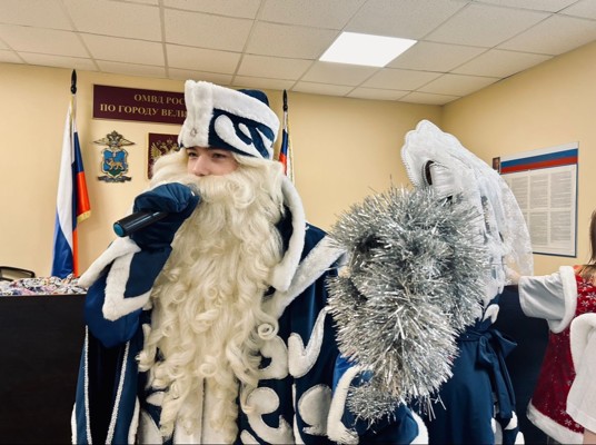 0 4 фотоПраздничное мероприятие организовали стражи правопорядка и представители ветеранской организации. Детей и их родителей встречали сказочные персонажи — Дедушка Мороз и Снегурочка. Вместе с ними ребята танцевали, играли, пели песни и водили хороводы. Также было подготовлено яркое новогоднее представление.