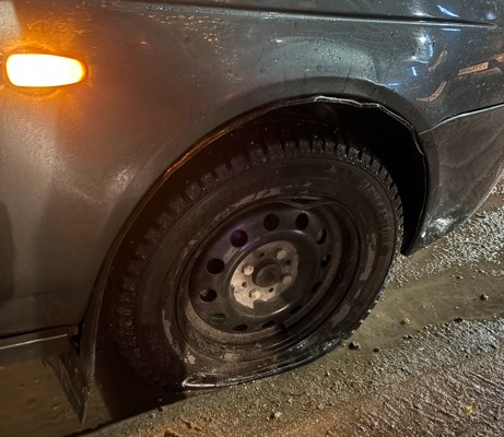 Великолучане пробивают колеса автомобилей из-за ямы на улице Вокзальной