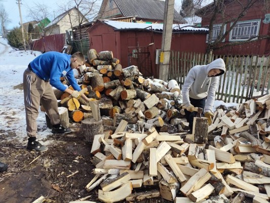 Великолукские студенты помогли одиноким пенсионеркам наколоть и сложить дрова