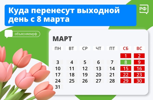 Сокращённой недели к 8 Марта не будет, выходной перенесут