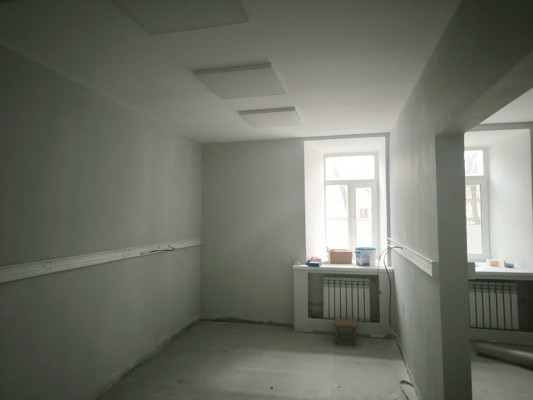 В коридоре стационара активно идёт ремонт: стены уже обшили, заштукатурили и покрасили одним слоем, старые светильники демонтировали. Скоро установят новые двери в кабинеты и подвесной потолок.