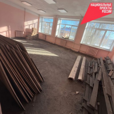 0На сегодняшний день уже выполнен демонтаж деревянных и бетонных полов в кабинетах и коридорах, ведутся работы по демонтажу полов библиотеки, подсобных помещений и столовой.