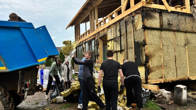 0 4 фотоВолонтеры помогли вынести мусор из дома, стекловату и другие строительные материалы. Команда продемонстрировала не только сплоченность, но и искреннее желание помочь людям в трудной ситуации, отметили в группе колледжа.