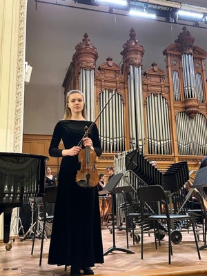 0Выпускница Детской школы искусств Прасковья Новикова продемонстрировала высокий уровень мастерства, исполнив партии в составе симфонического оркестра МГУ.