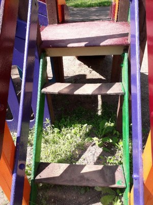 «Маленьким детям негде кататься и играть. Очень любим приходить туда, но, к сожалению, все разломано! На лесенке нет одной ступеньки, торчат сбоку гвозди, болты, оторван канат на лазалке-горке, досочки на цепочках разломаны и выдернуты», — поделилась состоянием площадки местная жительница. Подобное положение дел на данной площадке — уже в течение нескольких месяцев.