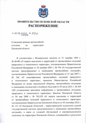 В Псковской области ввели режим чрезвычайной ситуации регионального характера