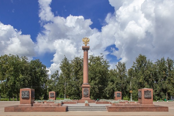 0Среди авторов проекта стелы были заслуженный архитектор России И. Н. Воскресенский, заслуженный художник России С. А. Щербаков, архитекторы Г. А. Ишкильдина и В. В. Перфильев.