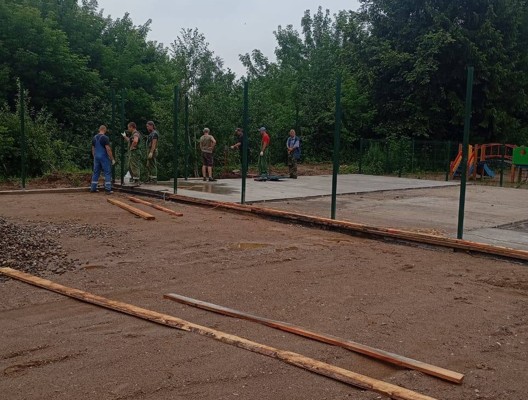 Как рассказал глава района Алексей Кузьмин, рабочие заливают бетонное основание спортплощадки, параллельно идет подготовка основания и для воркаут зоны. Уже закуплено все необходимое оборудование, которое в ближайшее время займет свое место.