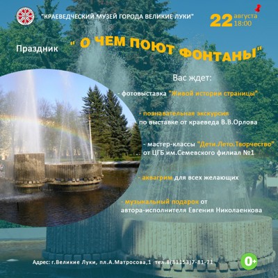 Праздник «О чем поют фонтаны» пройдет в Великих Луках (0+)