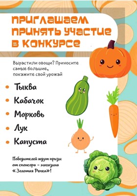 0Организаторы сообщают, что в рамках фестиваля пройдет конкурс на самый большой овощ, выращенный на своем огороде.