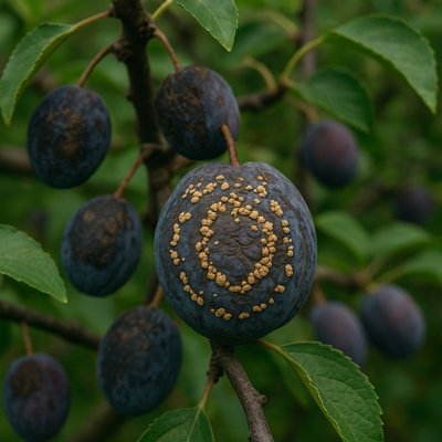 Бурая монилиозная гниль (Monilinia fructicola) — опасное карантинное заболевание плодовых культур, широко распространенное в Европейских странах, которое отличается высокой степенью вредоносности, поражает все наземные органы растения: цветки, почки, молодые побеги, ветви, плоды. При умеренных температурах воздуха и повышенной влажности споры гриба очень быстро распространяются. Один пораженный плод может заразить все деревья в окрестных садах.