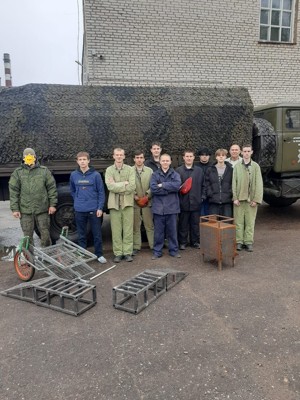 Ребята изготовили мобильные эстакады, печку-буржуйку, ящик для продуктов и новое изделие — тележку для эвакуации раненых.
