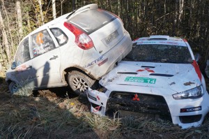 Далее на СУ-3 «Лавры» сходят с трассы стартовый 14: Виктор Леонтьев (Санкт-Петербург), Александр Зайцев (Лодейное Поле, ЛО) — Mitsubishi Lancer Evo-10; стартовый 42: Сергей Терентьев (Санкт-Петербург), Михаил Афонькин (Санкт-Петербург) — LADA Kalina