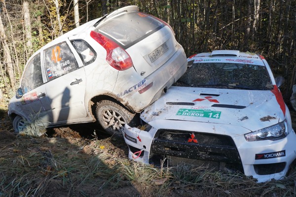 Сразу несколько экипажей вылетели в кювет на ралли в Псковской области