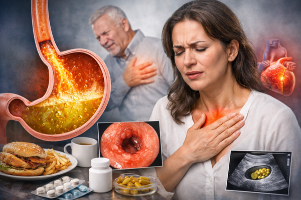Иногда жжение за грудиной вовсе не связано с желудком. Некоторые сердечные проблемы могут маскироваться под изжогу. Особенно опасно, если к жжению присоединяются одышка, слабость, холодный пот или боль отдаёт в руку, шею или спину. В таких ситуациях нужна срочная медицинская помощь.