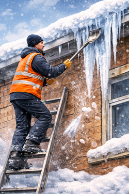 0Собственники и пользователи объектов недвижимости обязаны своевременно очищать от снега и наледи прилегающие территории, кровли и входные группы.