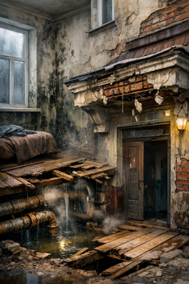 Серьезные претензии также связаны с состоянием подвала. Как утверждают авторы обращения, трубы водоснабжения там старые и сильно изношенные. Из-за этого в подвале скапливается влага, которая поднимается в жилые помещения. Жильцы периодически открывают подвал, однако это не помогает — оттуда продолжает идти пар. Кроме того, на первом этаже, по словам людей, начал проваливаться пол.