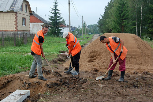 Работой руководит мастер великолукского филиала ОАО «ДЭУ-3» Евгений Дегелев, эта бригада здесь второй день. Их задача — уложить в низких участках четыре трубы для отвода воды. Накануне сделали один такой отвод, работать сложно из-за пролегающего рядом довольно изношенного уличного водопровода. Перед этим проведена очистка обочин дороги от зарослей кустарников и сорняков, и она сразу стала визуально шире, местами выбоины уже засыпаны щебнем. Однако в полном объеме необходимая подсыпка песком и щебнем, такая своеобразная подушка под асфальт, будет выполнена уже после укладки труб. Значит, дальнейшие сроки ремонтных работ зависят от слаженности действий бригады Дегелева. В ней главное звено — экскаваторщик Михаил Баранов. По словам бригадира, он опытный специалист, настоящий мастер своего дела. Вместе работали не на одном объекте по всей области: например, перед этим уложили 14 труб на автотрассе, связывающей Порховский и Гдовский районы. Сам Михаил заметил, что необходимый результат обеспечивает вся бригада.