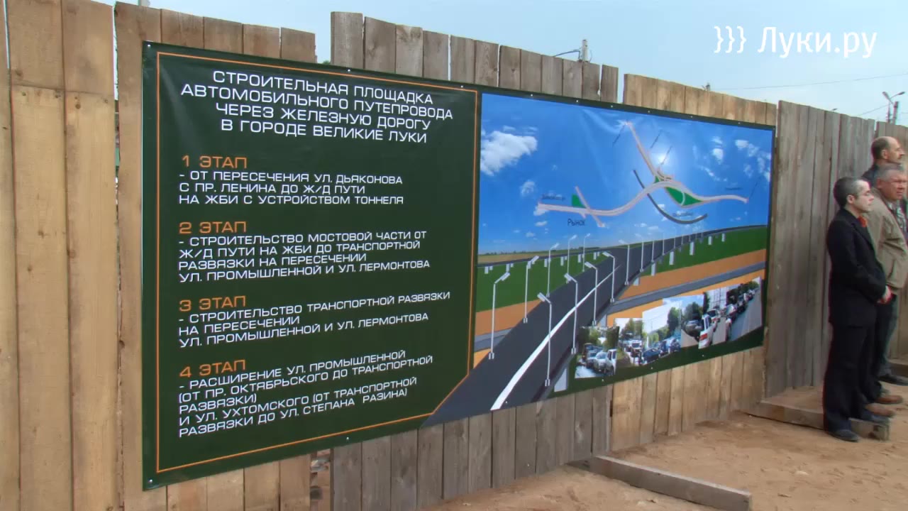 Был заложен символический камень и почетные гости расписались на строительной каске и пообщались с великолучанами, которые выразили надежду, что к 850 летию город получит путепровод. Строительная каска займет свое место в экспозиции городского музея.