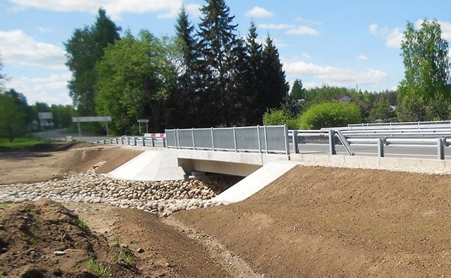 На км 5+740 автодороги Цапелька — Новоселье — Струги Красные — Плюсса переустраивается мост через реку Кебь на прямоугольную железобетонную водопропускную трубу, армируется с последующим бетонированием монолитных стен и перекрытия.