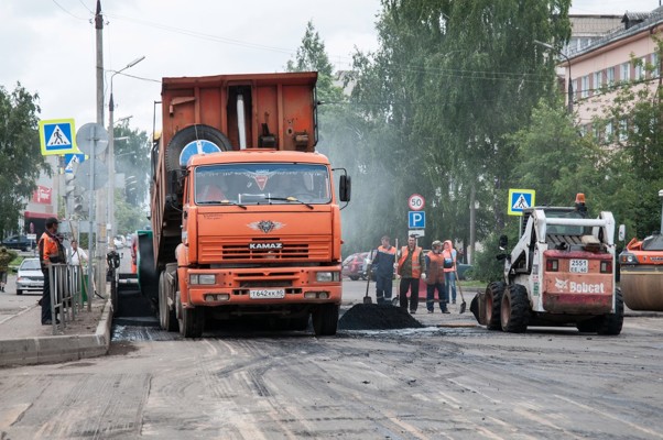 Идет ремонт дворовых территорий, а также проспекта Октябрьского — от проспекта Ленина до проспекта Гагарина.