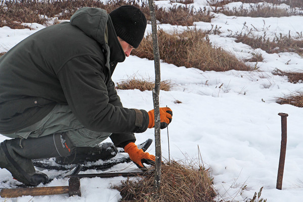 Одновременно со снегомерной съемкой проводится определение глубины промерзания болотного массива. Для этого поверхность болота очищают от снега, в промерзшем слое пробивают небольшое отверстие и замеряют его толщину.
