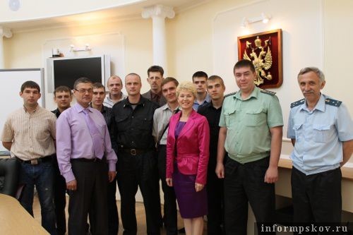 2-13 июля судебные приставы по обеспечению установленного порядка деятельности судов из Пскова, Великих Лук, Порхова, Острова и Пустошки в Псковском юридическом институте постигали науку, связанную с действиями в условиях, требующих соблюдения законности при применении физической силы, специальных средств и огнестрельного оружия. Приставы получили правовую, тактико-специальную, огневую, медицинскую и физическую подготовку, включающую отработку приёмов рукопашного боя.