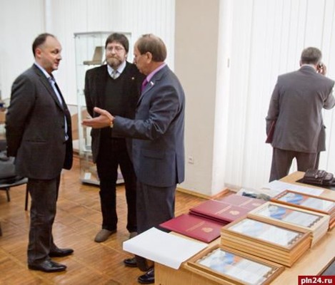 Сегодня в Пскове на узенькой улочке Профсоюзная, где расположена областная научная библиотека, было негде припарковать машину: в «храм книги» съехались члены т.н. регионального народного штаба общественной поддержки кандидата в президенты России Владимира Путина. Спустя полгода после успешного для них завершения предвыборной кампании нынешнего главы государства состоялось награждение активистов грамотами и благодарственными письмами. Однако, как с удивлением обнаружил корреспондент Псковской Ленты Новостей, на этом деятельность штаба не заканчивается – по выражению его лидера, директора музея-заповедника «Михайловское» Георгия Василевича, «народников» можно сравнить со школьниками, вернувшимися после летних каникул – впереди новая работа… «Время летней расслабленности из-за жаркой погоды заканчивается, - открыл встречу г-н Василевич. - Вновь начинается время, когда нам предстоит составлять и осуществлять планы в рамках нашей общественной работы». Он объявил, что с 24 по 26 ноября планируется организовать выезд членов регионального народного штаба поддержки Путина в Михайловское. В программе поездки: и экскурсии по музею с рассказами о подготовке празднования в следующем году 110-летия легендарного хранителя пушкинской усадьбы Семена Гейченко, а в 2022 году - столетия самого музея, и обсуждение насущных общественных вопросов. Кроме того, предложил Георгий Василевич, членам штаба предлагается устраивать хотя бы раз в два месяца, а лучше - ежемесячно - некие съезды за пределами крупных городов области - Пскова и Великих Лук. То есть штаб, вероятно, должен трансформироваться в некий общественно-патриотический клуб (словно по моде, заданной на Псковщине созданием «Изборского клуба»). После этого объявления директора музея-заповедника «Михайловское» сменил первый заместитель руководителя аппарата администрации Псковской области Руслан Фурс. Он отметил, что сейчас, когда страна, как говорят многие политологи и политики, движется от одного, авторитарного, уклада жизни, где все решалось за людей, к укладу новому, появление таких самоорганизующихся объединений, как народный штаб, будет очень хорошо встречено властями. Руслан Фурс подчеркнул, что власть заинтересована и в экспертной оценке «лидеров общественного мнения», и в их рекомендациях по тем или иным важным для общества вопросам. В пример он привел дискуссию по реализации проекта реконструкции набережной Великой в Пскове в рамках проекта создания туристско-рекреационного кластера «Псковский», где помимо мнений экспертов в своих конкретных сферах неплохо было бы услышать мнение имеющих авторитет общественных деятелей. «Это будет большим подспорьем для власти, которая работает по мандату», - заключил г-н Фурс. Затем перешли собственно к вручению благодарственных писем. Письма от центрального народного штаба общественной поддержки кандидата в президенты РФ Владимира Путина - за подписью руководителя этого штаба, известного кинорежиссера Станислава Говорухина - вручили тем, кто в ходе предвыборной кампании исполнял обязанности доверенных лиц Путина в Псковской области. Ими были: Георгий Василевич, глава Пскова Иван Цецерский, директор Центра лечебной педагогики Андрей Царев, главврач псковской городской поликлиники №3 Галина Неваленная и ныне руководите
