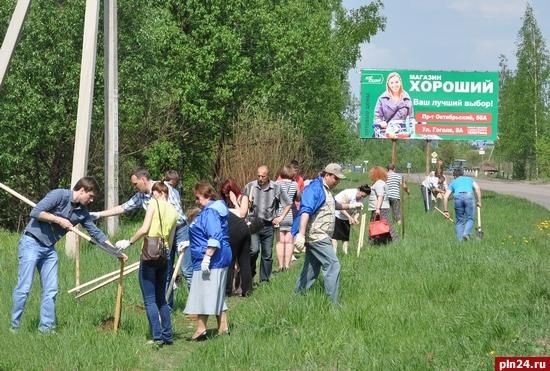 В преддверии Всероссийского дня посадки леса, который отмечается 18 мая, в Великих Луках состоялась акция по озеленению города. Как сообщили Псковской Ленте Новостей в пресс-службе администрации города, место высадки молодых берез, которым стал район воинского мемориального захоронения, было выбрано неслучайно. Не так давно члены партии «Единая Россия» принимали участие в посадке Аллеи славы на данной территории, и работы по благоустройству этого памятного места запланировано было продолжить. На этот раз, по инициативе комитета природопользования Псковской области, в акции приняли участие не только депутаты Великолукской городской Думы, члены местного отделения партии, но и члены городского студенческого совета, представители общественной организации «Молодая гвардия Единой России», управления жилищно-коммунального хозяйства, образования и работники администрации города. За достаточно небольшой промежуток времени участники мероприятия высадили более 50 берёз и каштанов, которые украсят придорожную территорию от улицы Дружбы до улицы 3-й Ударной Армии.