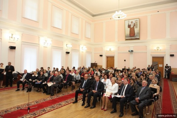 3 октября в администрации Псковской области состоялось торжественное мероприятие, посвященное Дню учителя. Его участниками стали лучшие педагоги региона, участники и победители конкурсов педагогического мастерства, руководители образовательных учреждений. Об этом Псковскому агентству информации сообщили в пресс-службе администрации региона. С профессиональным праздником собравшихся поздравил губернатор Псковской области Андрей Турчак. В лице присутствующих он передал слова глубокой благодарности 8 тысячам педагогических работников региона, подчеркнув, что администрацией региона была и будет оказываться максимальная поддержка системе образования Псковской области. В продолжение торжества губернатор вручил благодарственные письма и сертификаты на приобретение учебного оборудования директору Псковского технического лицея Светлане Озеровой, руководителю Псковского педагогического комплекса Любови Николаевой, директору Гуманитарного лицея (г. Псков) Светлане Лагашкиной. Эти учреждения вошли в перечень "500 лучших школ России". Андрей Турчак поздравил также декана электромеханического факультета Псковского государственного университета Александра Какурина с присвоением звания "Заслуженный работник Высшей школы Российской Федерации". В этот день также были вручены почетные грамоты Министерства образования и науки РФ победителям конкурса лучших учителей 2013 года: педагогу начальных классов Лицея № 10 (г. Великие Луки) Светлане Жолудевой, учителю музыки Стругокрасненской общеобразовательной школы Татьяне Одинцовой, учителю математики Гуманитарного лицея (г. Псков) Галине Яблоковой, учителю русского языка и литературы Псковской лингвистической гимназии Светлане Тройновой. От имени учителей с ответным словом выступила Светлана Тройнова. "Мой отец — офицер советской армии и в нашем доме фраза "Служу Советскому Союзу" всегда была наполнена смыслом. Сейчас я слышу ее из уст своих коллег. Мы служим детям, служим обществу, служим стране", — сказала она и выразила слова благодарности руководству области за внимание к образовательным учреждениям и педагогам, а также своим коллегам за верность своей профессии. Как отметил председатель комитета Псковского областного Собрания по законодательству, экономической политике и местному самоуправлению Владимир Яников, псковские педагоги своим талантом и мастерством зажигают сердца учеников и воспитанников, и благодаря их самоотверженному труду Псковская область в образовательной сфере занимает лидирующие позиции среди других субъектов страны. Он пожелал им дальнейшей успешной работы и талантливых учеников. Поздравил собравшихся и начальник Государственного управления образования Псковской области Александр Седунов. "Я уверен, что в Псковской области работают самые талантливые учителя", — сказал он и добавил, что об этом красноречиво говорят результаты всероссийских конкурсов, а также единого государственного экзамена. По словам Александра Седунова, проведенный Управлением образования мониторинг показал, что сильными являются не только школы в крупных городах и поселках области, но и образовательные учреждения в небольших деревнях, что свидетельствует о высоком профессионализме учителей Псковщины. В этот день были также вручены почетные грамоты админ