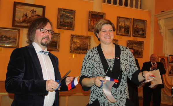 В Пскове в Городском культурном центре торжественно открылась персональная выставка живописца Алексея Рычкова "Православные храмы России" из частной коллекции Виктора Широких. Как передаёт корреспондент Псковского агентства информации, символическую шёлковую ленту при открытии выставки перерезали сам Алексей Рычков и заместитель главы Пскова Наталия Соколова. Напомним, этот выставочный проект посвящён 1025-летию крещения Руси. Презентация экспозиции состоялась в Сочи. До 13 ноября выставка работала в Рязани, псковичи смогут посетить её до 12 декабря. После тура по городам России картины вернутся в Сочи, где в дни проведения Олимпиады их смогут посмотреть участники Игр. Алексей Рычков является выпускником Академии живописи и дизайна им. В.И. Мухиной в Санкт-Петербурге. Его называют и современным Айвазовским, и последователем "великих голландцев". На выставке представлены 57 живописных полотен с изображением православных храмов из 17 городов России, в том числе псковских Троицкого собора, Спасо-Преображенского собора Мирожского и Успенского собора Святогорского монастырей. Открывая выставку, заместитель главы Пскова Наталия Соколова сказала, что русские православные храмы являются символом могущества русского человека, силы русского духа и веры. По её словам, очень приятно, когда русские художники отражают величие русских православных храмов в своём искусстве. А особенно приятно, подчеркнула она, когда не псковский, а питерский художник нашёл для себя возможным воплотить в своём творчестве всю красоту нашего древнего русского города. Наталия Соколова поблагодарила Алексе Рычкова от имени главы Пскова и всех псковичей, многие их которых не имеют возможности побывать во всех 17 городах лично и воочию полюбоваться на красоту тамошних храмов. Она также выразила слова признательности известному российскому меценату и коллекционеру Виктору Широких, по инициативе которого была создана эта прекрасная коллекция и стараниями которого она добралась до Пскова. От имени Митрополита Псковского и Великолукского Евсевия собравшихся на открытии выставки поприветствовал протоиерей Андрей Вахрушев. Он напомнил, что колокольню Ивана Великого в Московском кремле когда-то сравнили с зажжённой свечой, и сказал, что в этом смысле Россию можно сравнить с огромным подсвечником для пылающих красотой русских храмов. Андрей Вахрушев отметил, что век за веком менялись форма и убранство русских православных храмов, но не менялось их содержание. Он призвал тех, кто уже пришёл на эту выставку или только собирается её посетить, получить не только эстетическое наслаждение безупречной техникой масляной живописи, но и прочесть архитектурную азбуку русского православия, чтобы переосмыслить самих себя. "Желаю вам вдумчивого, глубокого созерцания", - сказал он. Настоятель Мирожского монастыря игумен Николай, в свою очередь, напомнил всем собравшимся, что по поучению святых отцов Церкви храмы являются "небом на земле". Он поздравил своих соотечественников с тем, что у нас в России так много поистине прекрасных сооружений, которыми можно гордиться. По словам игумена Николая, храмы ценны ещё и тем, что берегли русское искусство и передавали его из поколения в поколение. Он подчеркнул, что Мирожский монастырь в своё время явился зачинателем псковско