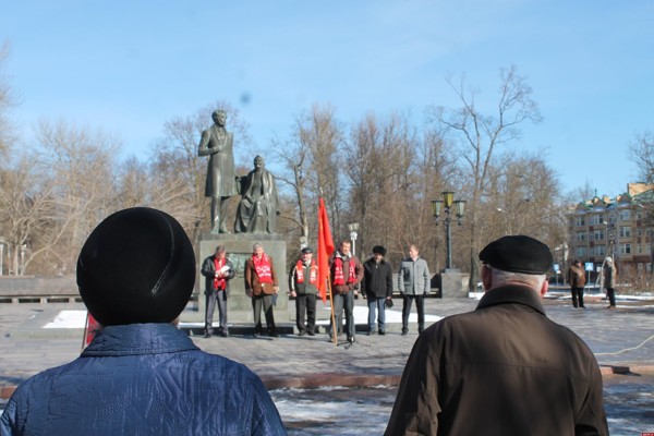 Сегодня в Пскове в Летнем саду, у памятника Пушкину и крестьянке стихийно, можно сказать, неожиданно собрались коммунисты. Ну, как неожиданно? Это было так же неожиданно, как 97% голосов жителей Крыма в пользу объединения с Россией. Занятно, что митинг не был заявлен, но порыв «красных» был столь благородным, что полицейские, стоявшие у памятника, за памятником и через дорогу, ничего не предпринимали. На акцию собралось человек сорок – был это, в основном, пропагандистский костяк псковских коммунистов. Да, конечно, до митинга Общероссийского народного фронта, масштаб, конечно, не дотягивал, и вряд ли переплюнет завтрашнее торжество на все той же площади Ленина, однако он получился какой-то живой. Оригинальностью лозунгов коммунисты не блеснули («Фашизм не пройдет», «США – вон из Украины!», Требуем международного суда над бандеровцами», «Социализму – да! Нацизму – нет!»), однако речи были по-настоящему зажигательными, искрометными и в высшей степени афористичными. «Город-герой Киев хотят лишить этого звания новоявленные «демократы». Если русские не сплотятся, то проиграют во всем, - заверил собравшихся великолукский коммунист Аркадий Мурылев. Он был на выступлении непривычно пламенным. - Нам наплевать на санкции западных стран, потому что они обернутся потерями для самих этих государств. Референдум в Крыму показал, что воля народа является непреложным законом в демократическом государстве». О каком «демократическом государстве» - России или Украине – шла речь, Аркадий Анатольевич не уточнил. Забавно было думать: когда в Псковской области коммунисты проигрывают, то это связано с подтасовками и продажностью избирательных комиссий. Но референдум в уже – будем называть вещи своими именами – русском Крыму стал «волей народа». Ну, наверное, 14 сентября на выборах губернатора тоже будет торжествовать «воля народа - непреложный закон в демократическом государстве». Лидер псковских коммунистов Александр Рогов был еще более активен и еще радостнее приветствовал решение жителей Крыма присоединиться к России. «Как сейчас говорят… С новым Крымом вас! – пламенно начал он. – Вот и показали свою сущность все эти деятели, вроде Немцова, Навального… Они не за Россию, они не за русских!». Рогов тоже возмутился тому, что Киев хотят «лишить звания города-героя» («Спасибо коллеге Мурылеву, я только узнал об этом»!), а потом расхвалил действия Кремля в Крыму. «Я не часто поддерживаю нашу власть, но тут нельзя не согласиться с их действиями. Но вот похвалив нашу власть, которая наконец-то действует по принципу «русский, русскому помоги», хочу сказать: надо делать и другие шаги. Не останавливаться». Где должны быть эти шаги – в российских регионах или за их пределами – первый секретарь Псковского обкома КПРФ тоже не уточнил. Зато вспомнил про местные сюжеты. «Не могу сказать слово об областной власти. Где они были, когда здесь разворачивались все события, когда наш народ выказывал поддержку жителям Крыма?..». «Дома! В Ленинграде!», - послышалось из толпы. «Что они сделали для того, чтобы поддержать? Ничего», - заключил Рогов. После этого коммунист сделал паузу и стал вглядываться в толпу. «А вот представители СМИ есть сегодня? – спросил он и, увидев одно знакомое лицо, продолжил «целевым подходом». – Вот не могу не сказать про запрещенный концерт (в толпе 