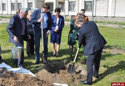 Областные и городские власти высадили деревья у великолукского детского дома