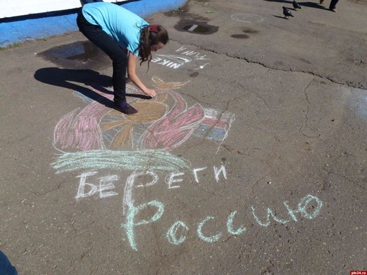 Великолукские школьники нарисовали мелками Россию