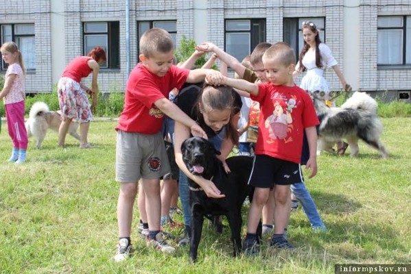 Волонтеры псковского Детского фонда, кинологи и студентки ПсковГУ посетили воспитанников двух центров в Великих Луках