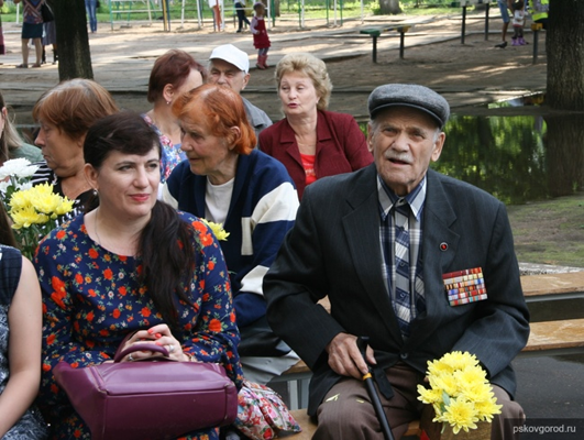 От имени главы Пскова псковичей поприветствовал депутат Псковской городской Думы Владимир Воробьев: «Сегодня мы мысленно возвращаемся в то время, когда фашистская Германия напала на Советский Союз. В первые дни июля все рода войск проявили беспримерные храбрость и мужество. А при освобождении Пскова на вашей улице шли самые ожесточенные бои. С этого дня город истинно русской культуры стал опять принадлежать псковичам. Сейчас мирное время. За 72 года Псков восстановили, он продолжает совершенствоваться, и в это большой вклад вносите вы». Депутат пожелал собравшимся здоровья, благополучия, достатка, а также «чтобы наш многонациональный народ не испытал больше никогда ужасов войны».