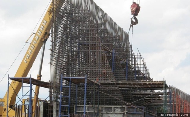 В Великих Луках возводят монолитные подпорные стены и опоры путепровода