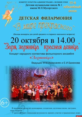Великолучан приглашают на концерт детской филармонии «Заря, заряница - красная девица»
