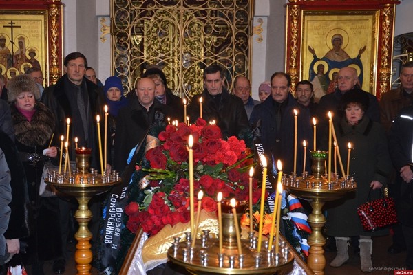 В Великих Луках простились с депутатом Псковского областного Собрания, генеральным директором АО «Великолукский завод «Лесхозмаш» Александром Василевским. Как сообщили Псковской Ленте Новостей в пресс-службе регионального парламента, проводить коллегу, товарища и друга в последний путь приехали председатель регионального парламента Александр Котов, вице-спикер, руководитель фракции «Единая Россия» Валентин Каленский, заместитель председателя Собрания Виктор Остренко, депутаты нынешнего и прошлых созывов. В траурной церемонии также приняли участие председатель Государственного комитета Псковской области по экономическому развитию и инвестиционной политике Андрей Михеев, глава Великих Лук Николай Козловский, его заместитель Сергей Агарёв, глава администрации Великих Лук Виктор Каменский, сослуживцы и одноклассники Александра Василевского, горожане. На траурном митинге спикер регионального парламента Александр Котов сказал, что с уходом Александра Василевского депутаты потеряли не просто коллегу, а настоящего друга. «Всех нас постигла невосполнимая утрата. Всю свою сознательную жизнь Александр Викторович посвятил служению людям: сначала на производстве, потом стал директором завода – под его руководством предприятие успешно работало и продолжает работать сейчас, – отметил Александр Котов. – Трижды Александр Василевский избирался депутатом областного Собрания, что свидетельствует о том, что люди ему доверяли и уважали». Александр Котов передал родным и близким соболезнования от губернатора области Андрея Турчака и от администрации региона. «Александр Викторович – человек заслуженный, он много сделал для города Великие Луки и для нашей области, и, провожая его сегодня в последний путь, мы говорим ему за это спасибо». Заместитель главы Великих Лук Сергей Агарёв, выступая от имени городского депутатского корпуса и от всех великолучан, отметил, что горожане уважали и ценили Александра Василевского: «Люди очень хорошо к нему относились. Буквально недавно прошли выборы – горожане поддержали Александра Викторовича, надеялись, что он многое ещё сможет сделать». Заместитель главы города назвал Александра Василевского «человеком российского масштаба». «Более 25 лет Александр Василевский руководил предприятием. Он был выбран на должность директора трудовым коллективом, и до последнего часа заводчане ему доверяли. Это был светлый человек, и мы будем на него равняться», - сказал Сергей Агарёв. Глава администрации Великих Лук Виктор Каменский также отметил, что Александр Василевский пользовался большим уважением среди людей: «Это был Человек с большой буквы: профессионал, патриот, глубокопорядочный человек». Заместитель генерального директора «Лесхозмаша» Петр Довыденков признался, что не может словами передать свою скорбь. «Александру Викторовичу дорога не была усыпана звёздами и лаврами – всё чего он достиг, он добился своим трудом и упорством, - сказал сотрудник предприятия. - В лихие 90-е годы только благодаря нашему директору завод выжил – директор не давал нам останавливаться, сам шёл вперед и нас вёл за собой». Петр Довыденков заверил, что светлая память об Александре Василевском навсегда останется в сердцах заводчан. Отпевание Александра Василевского прошло в Свято-Вознесенском кафедральном со