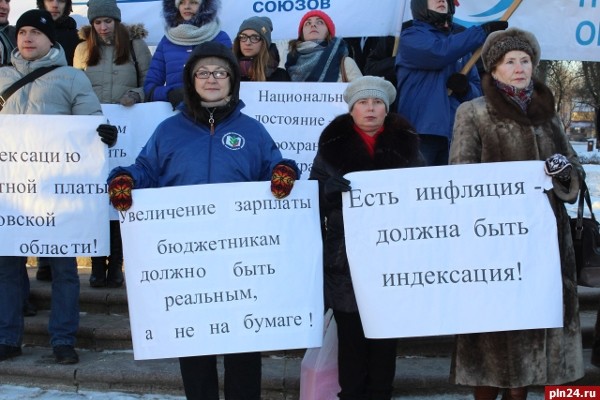 Пикеты в поддержку требования индексации зарплат бюджетников прошли сегодня в Пскове и в Великих Луках
