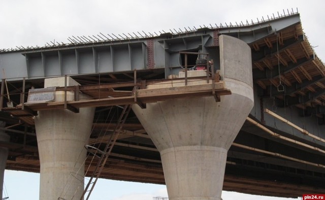 Строители готовятся к сборке пролета правого направления на путепроводе Великих Лук