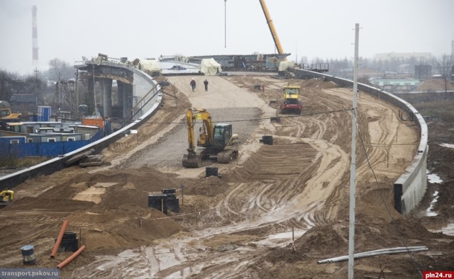 В городе Великие Луки Псковской области продолжается строительство автодорожного путепровода через железную дорогу. Как сообщили Псковской Ленте Новостей в Государственном комитете Псковской области по транспорту, на данный момент на объекте строительства завершены работы по устройству основных конструкций из монолитного бетона, такие как путепровод тоннельного типа, подпорные стены основного путепровода и эстакады съезда на многорядном свайном фундаменте, стоечные опоры и устои на свайном фундаменте. Также произведена надвижка металлоконструкций пролетного строения левого направления основного путепровода, выполнены работы по устройству монолитной железобетонной плиты проезжей части, а также по устройству оклеечной гидроизоляции плиты. Производится конвейерно-тыловая сборка металлоконструкций правого направления пролетного строения основного путепровода. Выполняется подготовка к очередному этапу надвижки металлоконструкций. Завершается обратная засыпка пазух подпорных стен с послойным уплотнением, выполняются работы по устройству песчаного подстилающего слоя дорожной одежды. Осуществляется прокладка ливневой канализации, перенос коммуникаций, попадающих в пятно застройки.