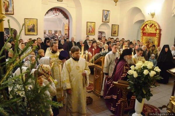 В праздник Рождества Христова епископ Великолукский и Невельский Сергий возглавил литургию в Вознесенском соборе Великих Лук, сообщили Псковскому агентству информации в пресс-службе епархии.