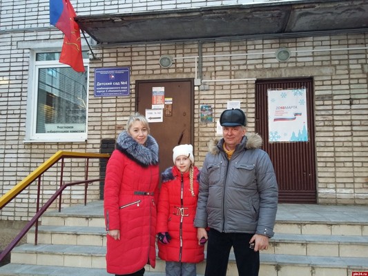 «Мы обычно всей семьей ходим на выборы, — говорит великолучанин Виктор Бердников. — Это наш гражданский долг. Сегодня мы с дачи специально пораньше приехали, чтобы пойти на выборы».Надежда и Виктор Бердниковы 18 марта взяли на выборы младшую дочь, пишет Луки.ру. «Нашему сыну в следующем году исполнится восемнадцать лет. Он знает о выборах, на эту тему дома были разговоры», — говорит Надежда Бердникова. «Ходить на выборы — это правильно, это наша обязанность», — отмечают супруги и не изменяют этой традиции, которая существует в их семье.Напомним, сегодня в Псковской области стартовали выборы Президента Российской Федерации. В 8:00 утра открылись все 638 избирательных участков, их работу обеспечивают более 5,8 тысяч членов избирательных комиссий. Всего в список избирателей Псковской области включено 522 тысяч 780 человек, из них 5,2 тысяч — проголосуют впервые в жизни.Свое избирательное право уже реализовал временно исполняющий обязанности губернатора Псковской области Михаил Ведерников. Он пришел на избирательный участок вместе с семьей. Свои голоса также отдали депутат Государственной Думы Александр Козловский, спикер Псковского областного Собрания депутатов Александр Котов, глава города Великие Луки Николай Козловский, глава города Пскова Иван Цецерский, глава администрации Пскова Александр Братчиков, глава администрации Великих Лук Игорь Чевжик. Также в Псковской области проголосовали люди разного возраста и профессий.