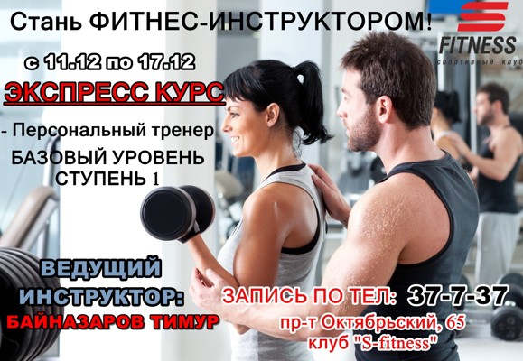 На курсы подготовки фитнес-инструкторов приглашает клуб "S-Fitness"