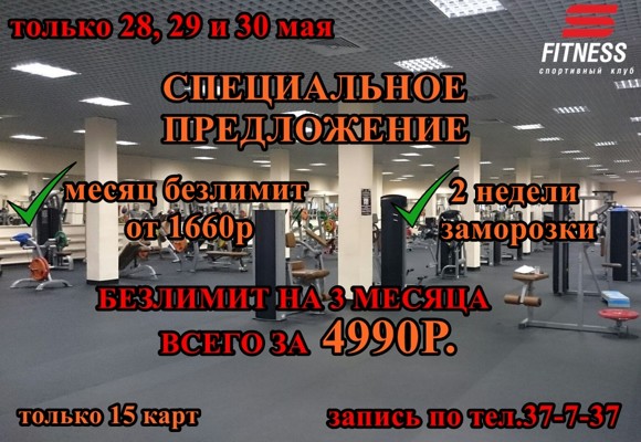 А ещё спортивный клуб S-fitness проводит розыгрыш абонемента на 8 посещений.